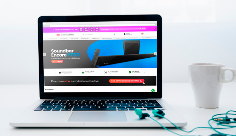 Iniciamos com o novo site institucional, pois, além da venda de equipamentos, na época o foco principal era a instalação de som ambiente em residências e comércio.